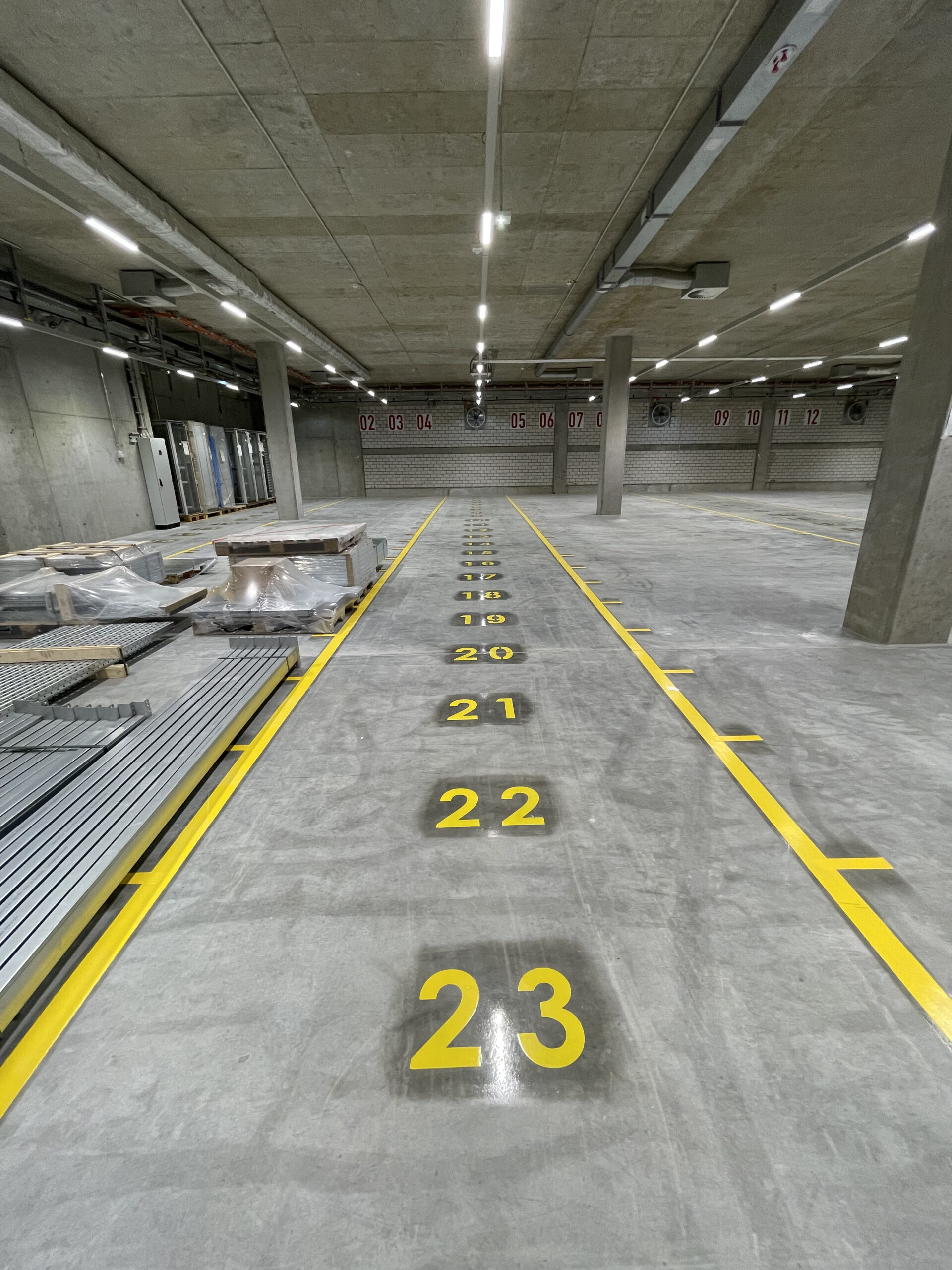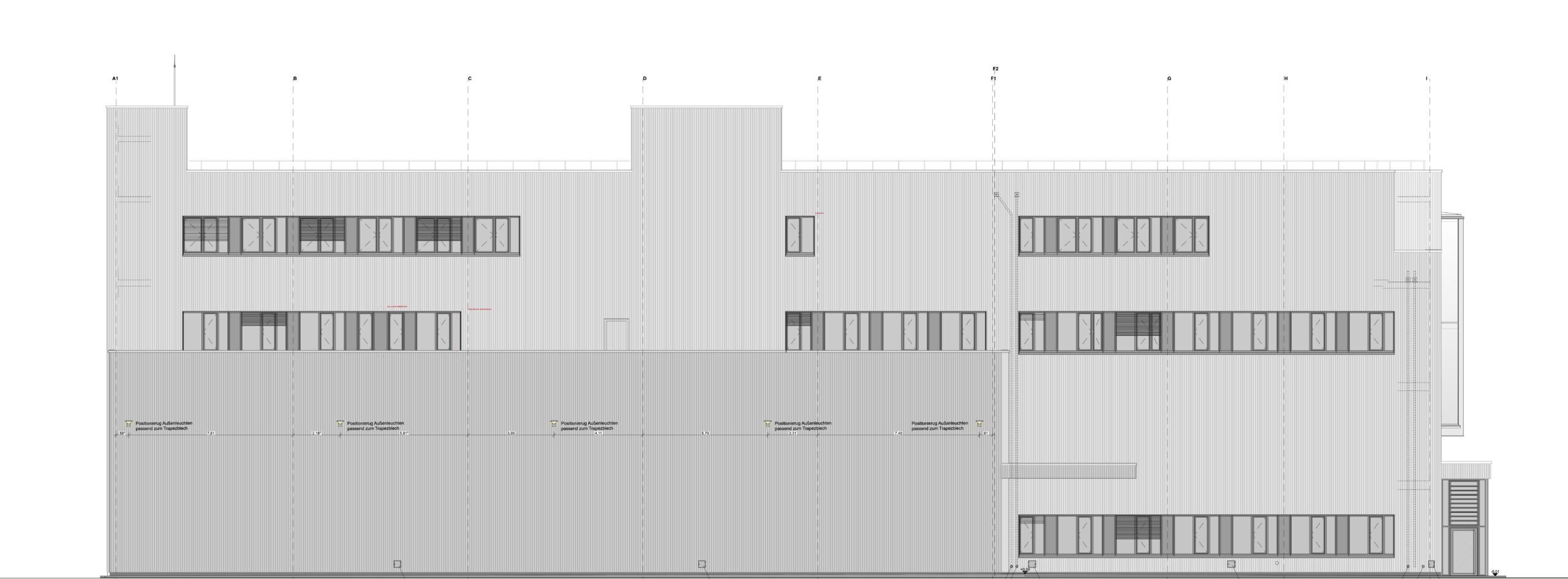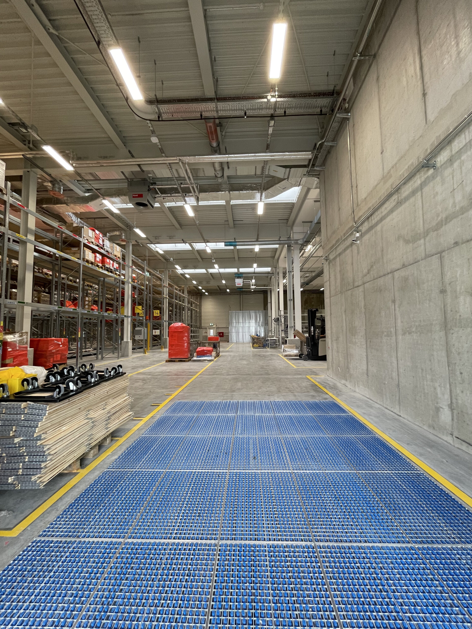 Großteil des Erd- und ersten Obergeschosses werden als zweigeschossiger Industierbau ausgebildet und bilden den Lagerbereich des Logistikzentrums.