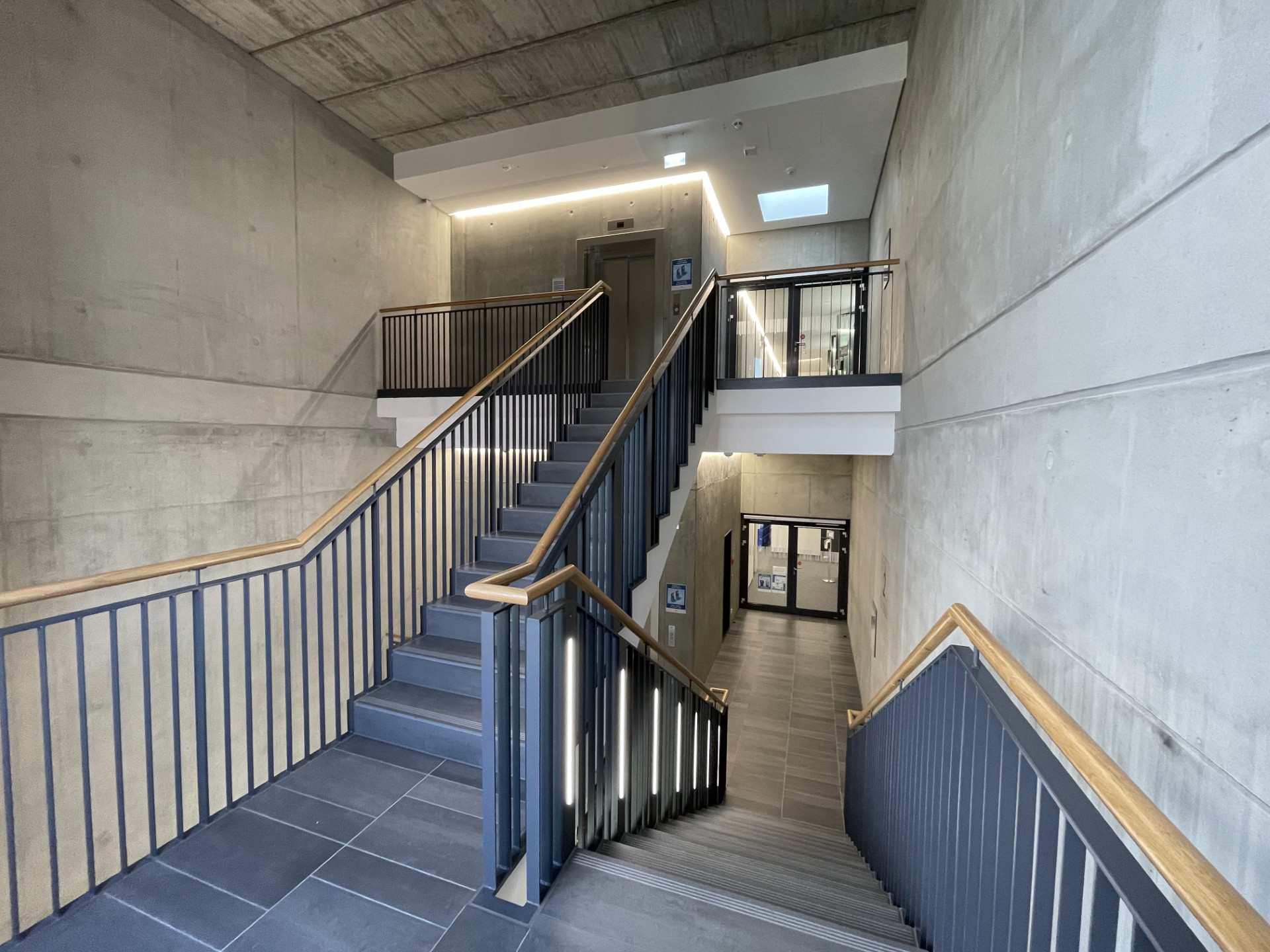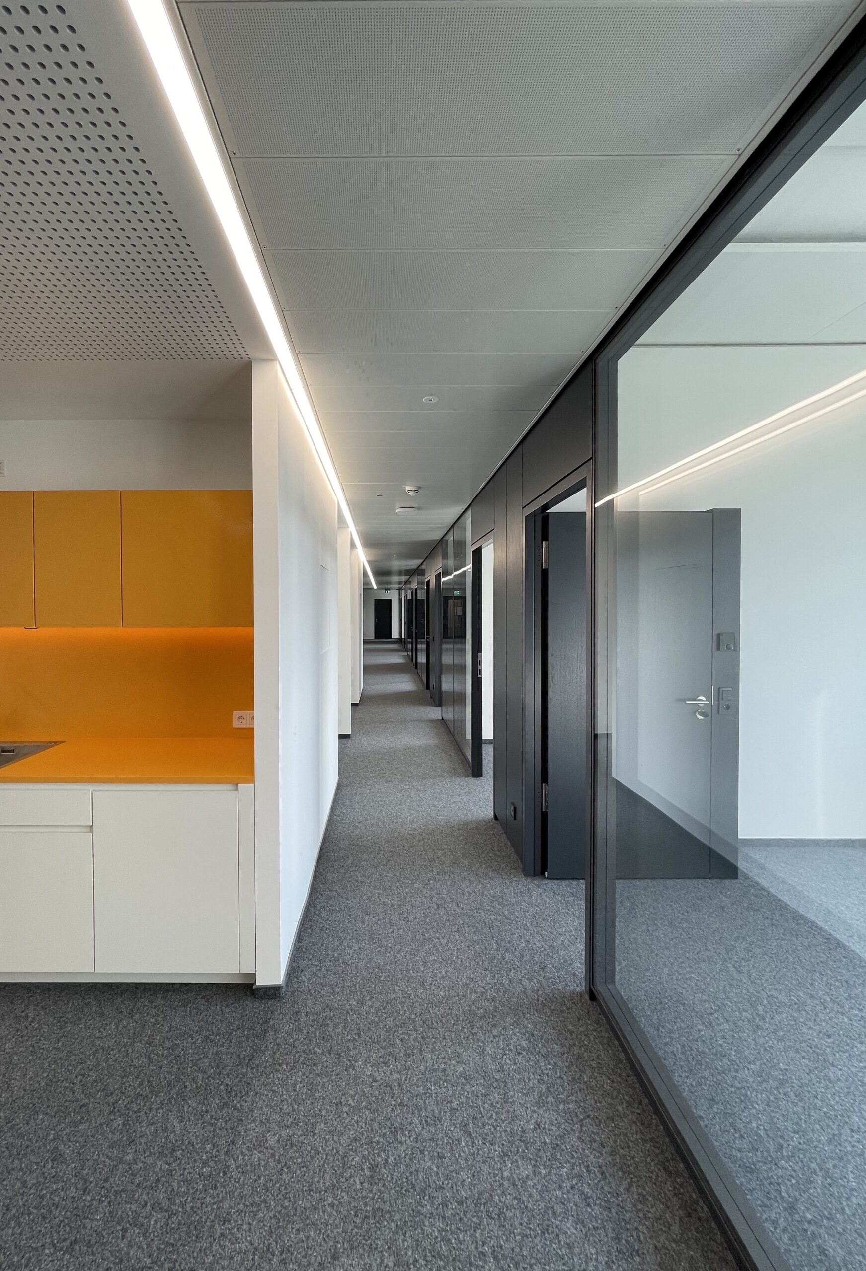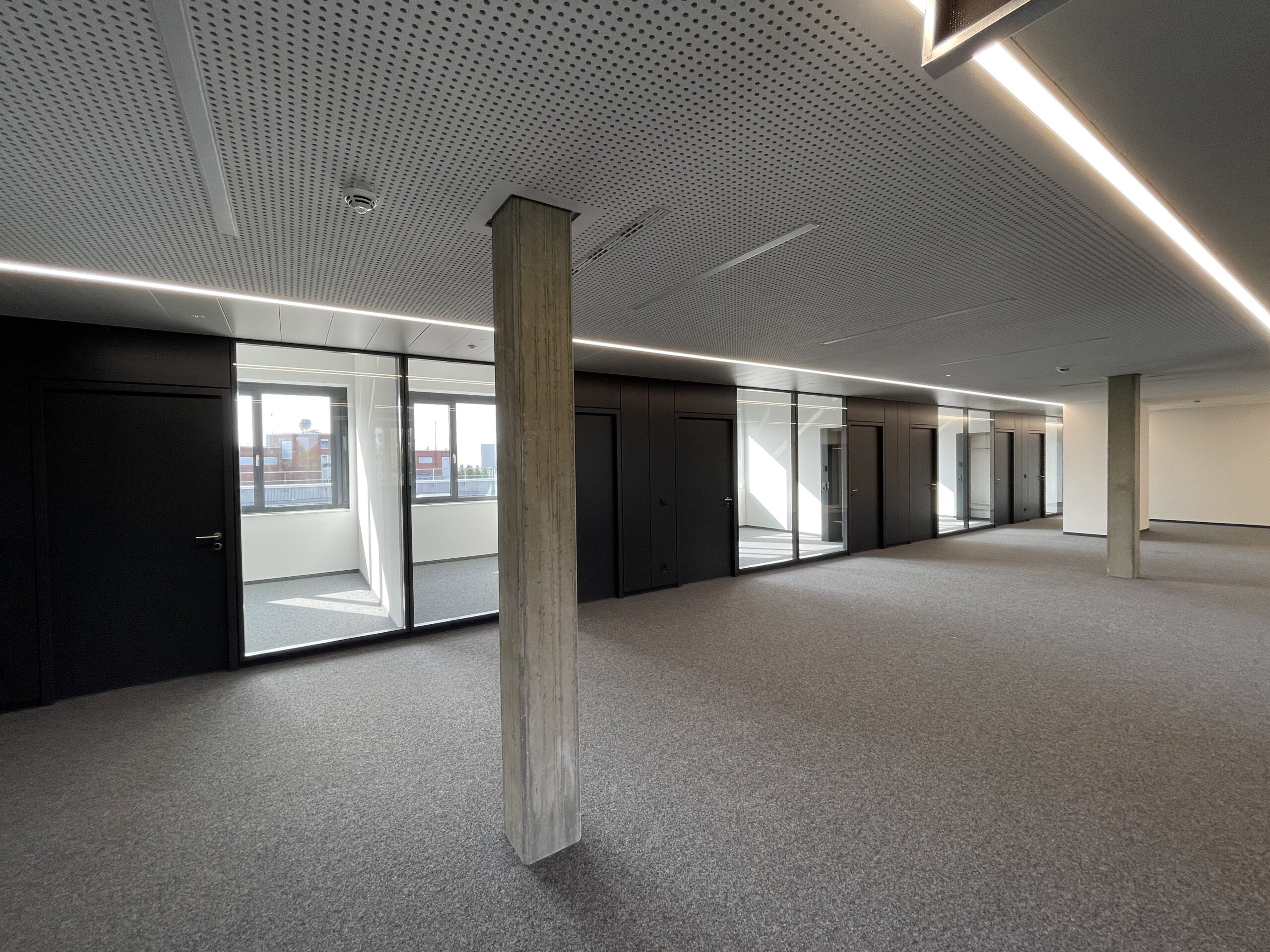 Großteil des Erd- und ersten Obergeschosses werden als zweigeschossiger Industierbau ausgebildet und bilden den Lagerbereich des Logistikzentrums.